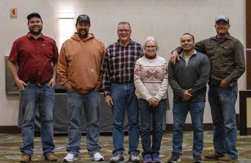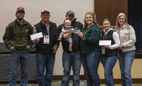 Adult Division Winners Top 3 Adult teams: L to R: 3rd Austin Porter & Trent Miller; 2nd Randall & Diana Burns; 1st Jared Kleibeoker & Joel Barrientos; Each winner received a embroidered item from Select Sires Member Cooperative! THANK YOU SELECT SIRES! |