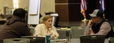 Committee Meetings State Committees also meet on Friday to discuss Hosltein business. Ryan Bilyeu, Lora Wright, and Leslie Parrigon of the Show Committee meet before the evening activities. |