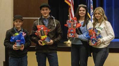 Youth Division Winners Top 3 youth teams: L to R: 1st: Dallison & Brady Hostetler, 2nd Harper VanZyverden & Faith Ling; 3rd Raygan & Kaylea Dougherty (not present for photo). Each winner received a candy bouquet sponsored by Summit Genetics, Ron Ely and either a Race Brothers gift card or Midwest Dairy merch from Judy Thomas! THANK YOU SPONSORS! |